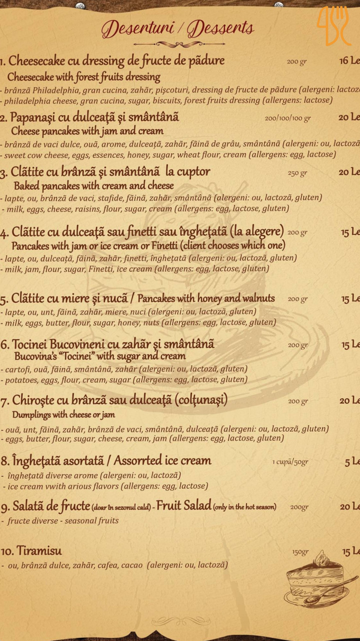 ★ 4.0 / 5 (93 Évaluations)Européen Roumain Petit DéjeunerCodrii Bucovinei