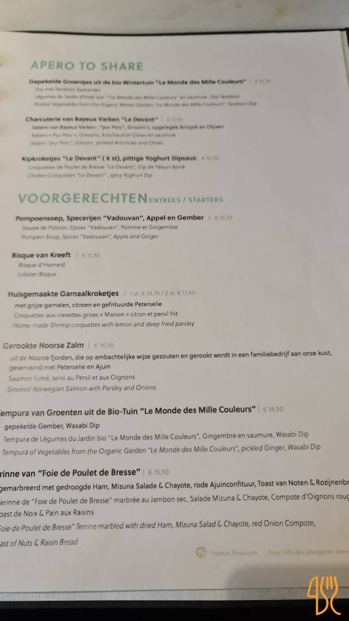 ★ 4.8 / 5 (3423 Évaluations)Petit Déjeuner Viande Desserts VinKruidtuin