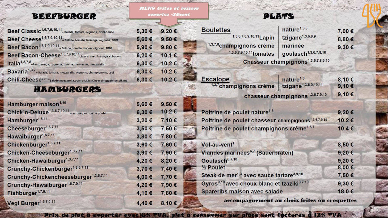 ★ 4.7 / 5 (1367 Évaluations)Français Belge Brunch Déjeuner BoissonsAu Numéro 3