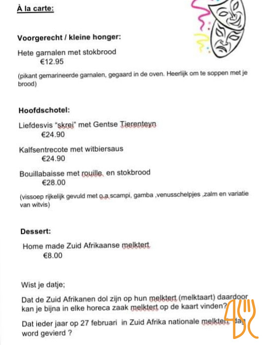 ★ 4.1 / 5 (1510 Évaluations)Belge Européen Poisson Viande SoupeHet Jagershof