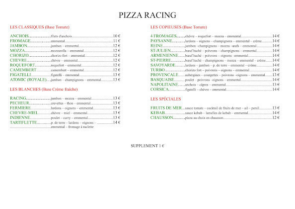 ★ 4.6 / 5 (145 Évaluations)Pizza Restauration Rapide GlacePizza Racing Saint Julien